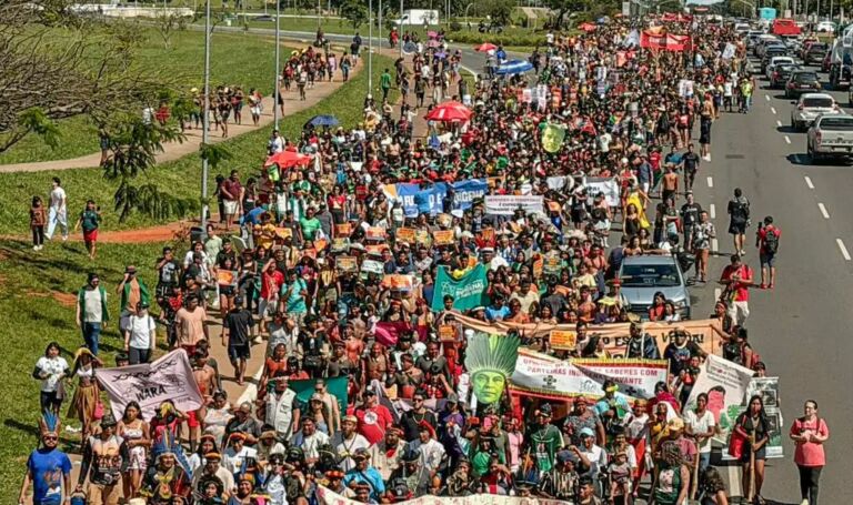 Milhares de indígenas de todo o Brasil marcham, nesta terça-feira...