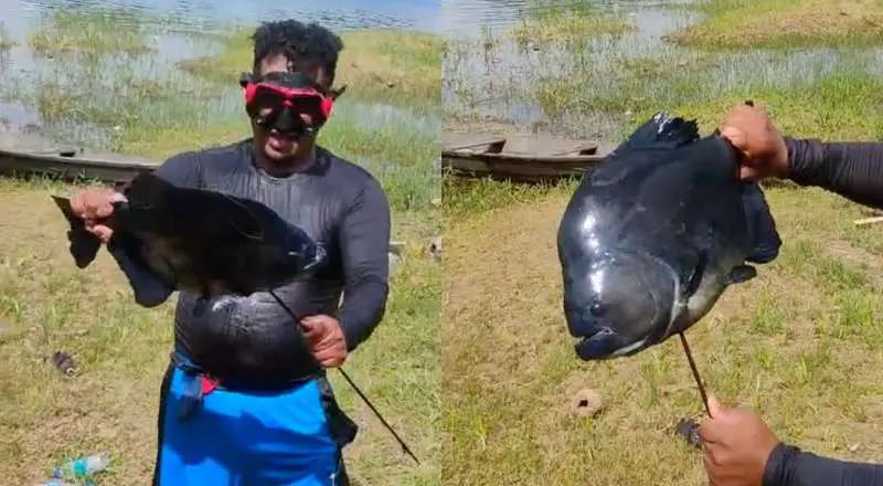 Vídeos que circulam nas redes mostram o pescador exibindo a piranha e destacando seu tamanho: “Olha o tamanho dessa bruta! Primeira caída do dia”, disse ele, surpreendido com a captura.