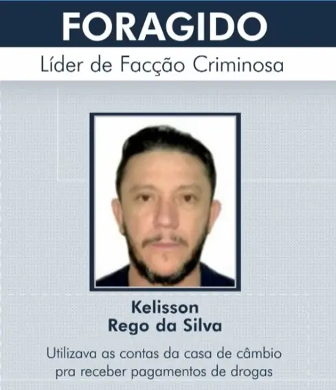 Um terceiro investigado, Kelisson Rego da Silva, conhecido como “Loirinho”, é considerado foragido. Ele é apontado como um dos chefes do Comando Vermelho e, segundo a Polícia Federal, utilizava contas da casa de câmbio para receber pagamentos do tráfico de drogas.